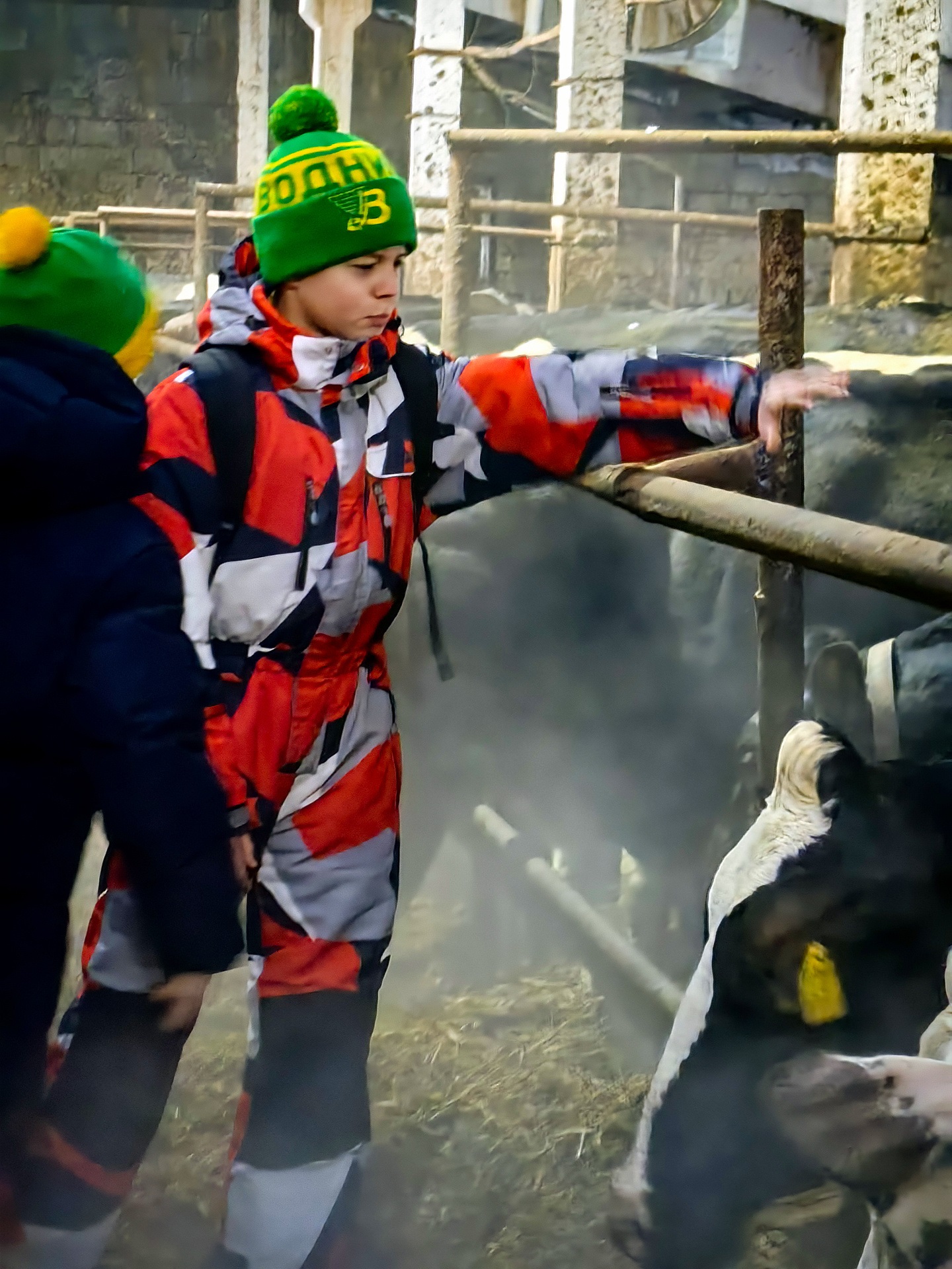 Что было дальше? Юные спортсмены не только посмотрели и накормили коров, но и познакомились с самыми малышами-телятами, налюбовались на местного кота, который грелся об телёнка. А ещё ребятам удалось изучить современный процесс доения. Вопросов было много!